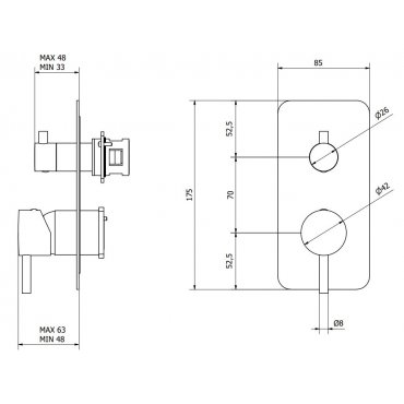 IB RUBINETTERIE MILANOTORINO DREIWEGE-WANDBATTERIE CHROM​ EMT312CC-INC312_19