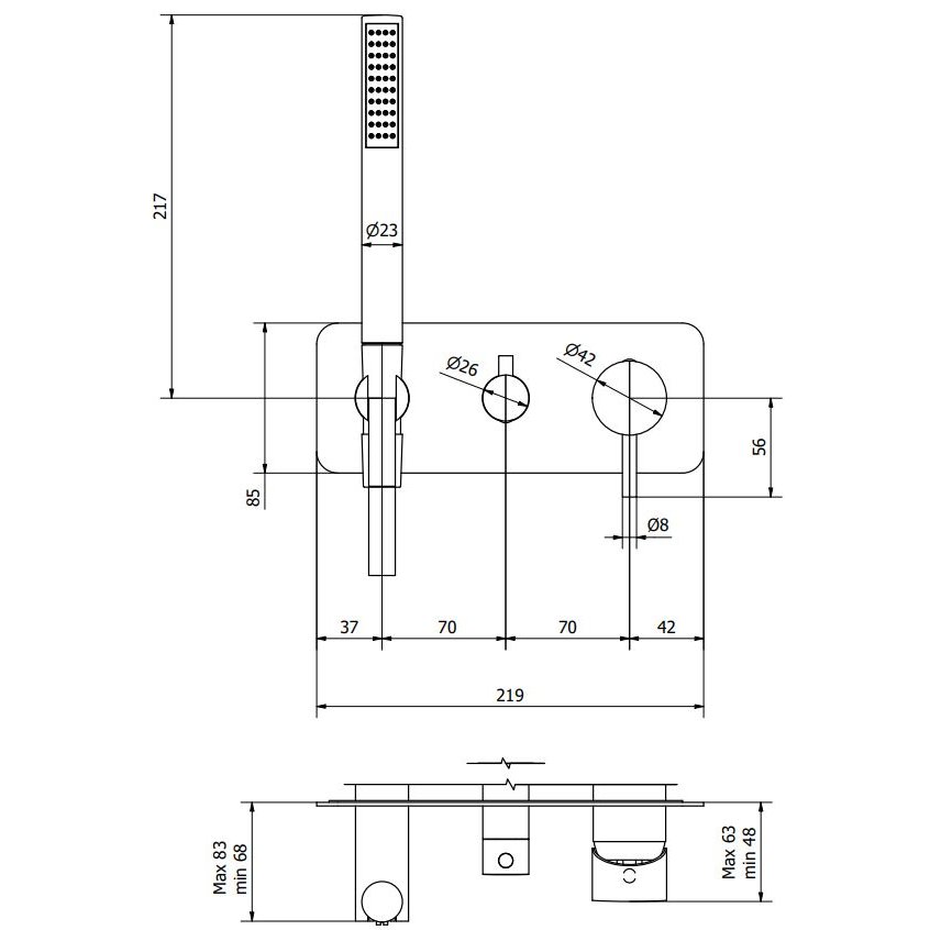 NEWFORM LINFA II UNTERPUTZ-DUSCHGRUPPE MIT HANDBRAUSE UND 2-WEGE-UMSTELLER