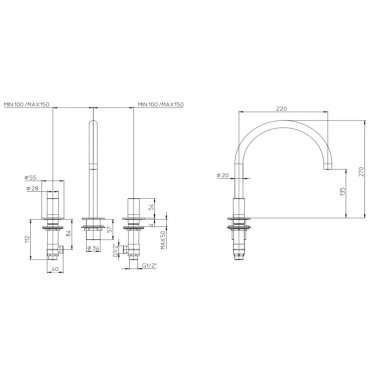 QUADRO DESIGN VALVOLA02 3-LOCH-WASCHTISCHBATTERIE MIT SCHWENKBAREM AUSLAUF