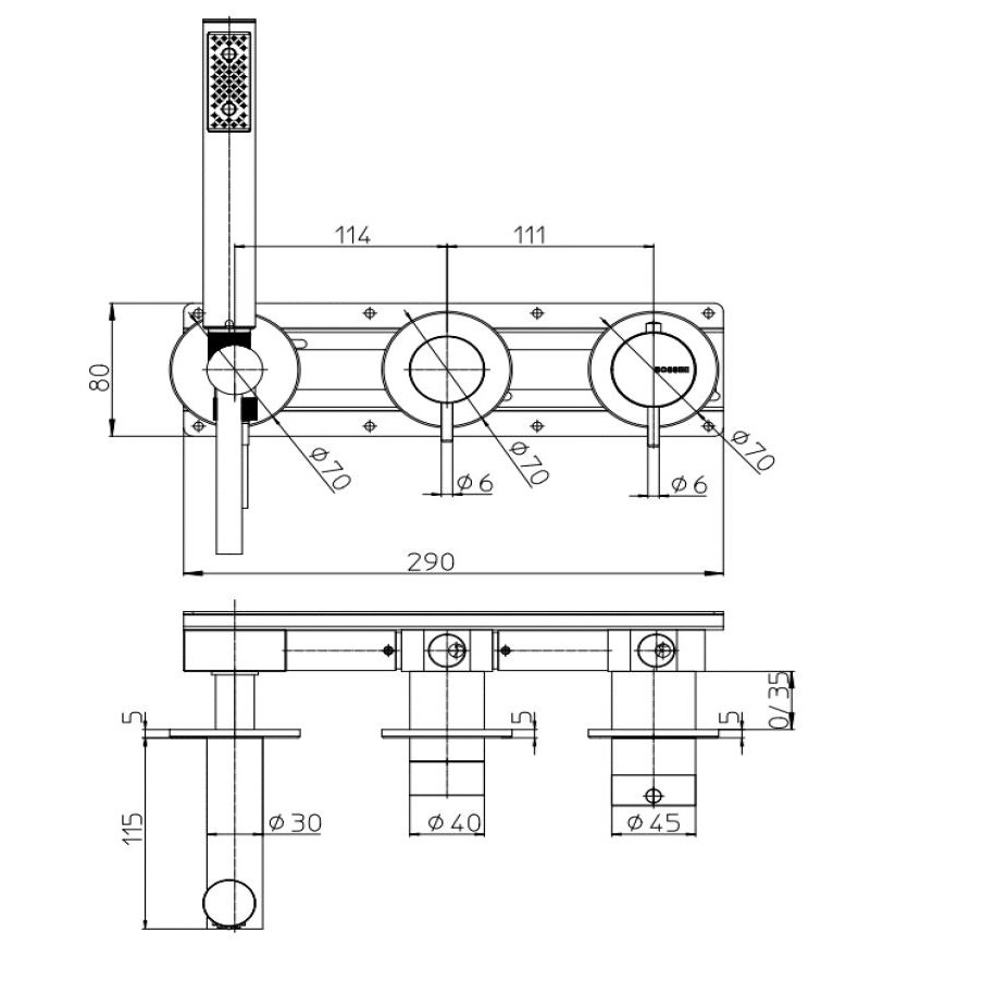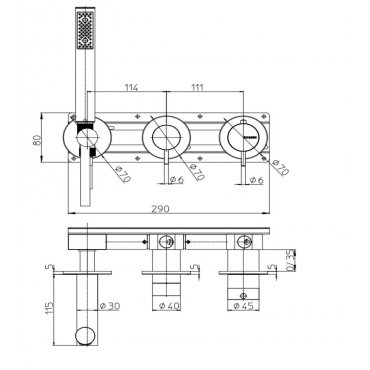 IB RUBINETTERIE MARMO UNTERPUTZ-DREIWEGE-BRAUSEBATTERIE MIT BRAUSEGARNITUR