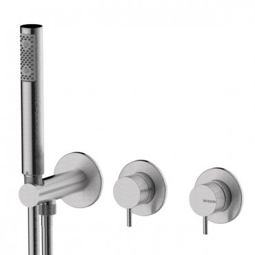 BOSSINI NOBU BRAUSEBATTERIE MIT 2-WEGE-UMSTELLER UND BRAUSEGARNITUR SATINSTAHL