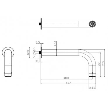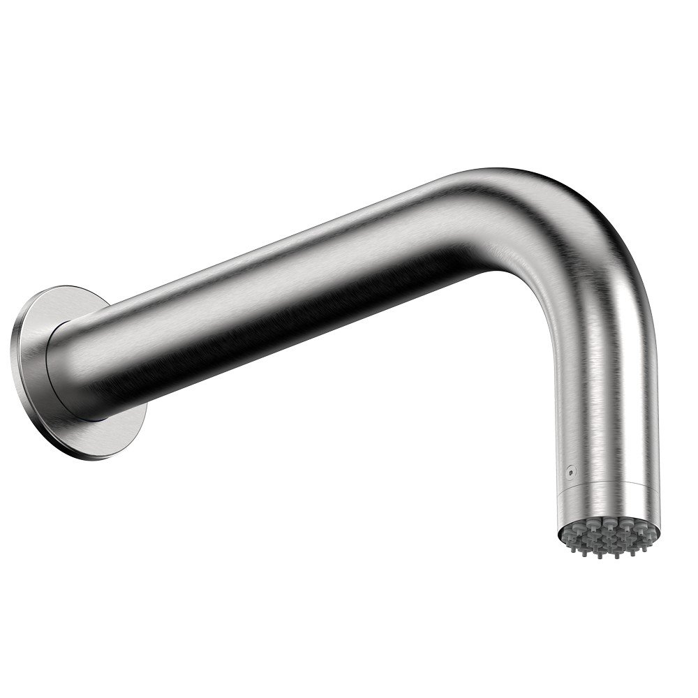 Wandarm aus Edelstahl Ø 54 mm mit festem Nobu-Regenbrausekopf.