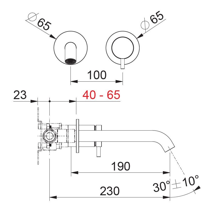 Äußere Teile TIMELESS Wand-Waschtischbatterie für IN37 mit Auslauf L=190 mm, schwenkbarer Auslauf D.65.