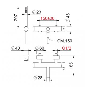 BEAMTECH WANNENBATTERIE MIT EDELSTAHLAUSLAUF UND HANDBRAUSE