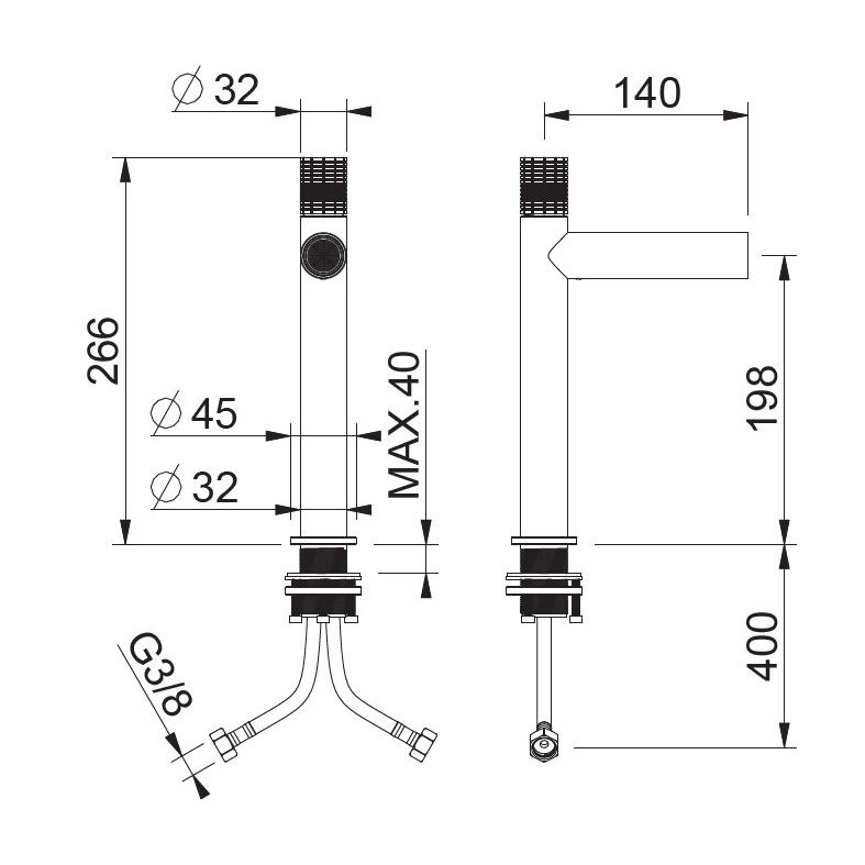 • BUGNATESE SMART WASCHTISCHMISCHER OHNE ABLAUFGARNITUR MIT EDELSTAHLFLEX