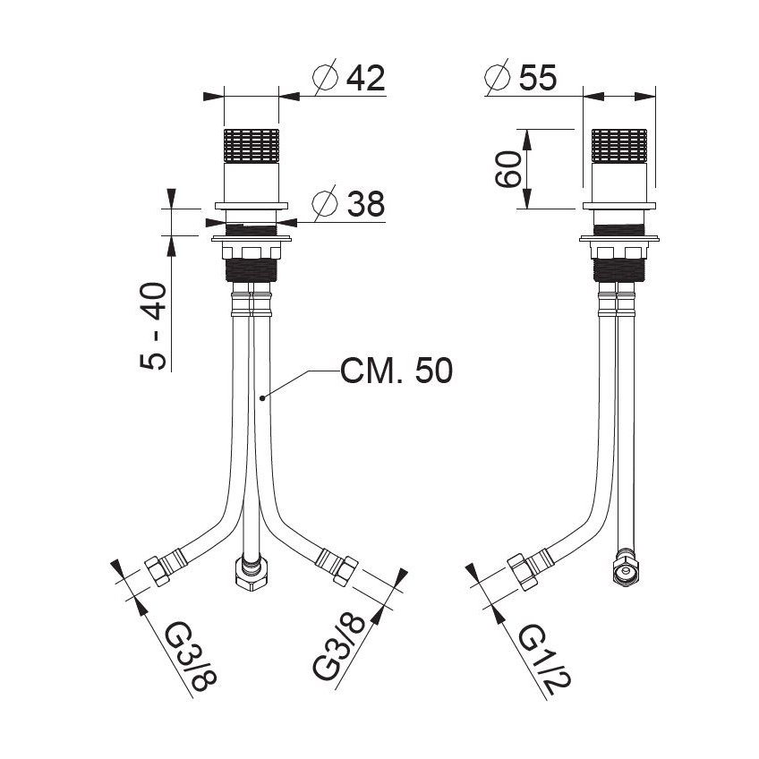 TREEMME 22 MM UNTERPUTZ-BRAUSEBATTERIE IN STAHL