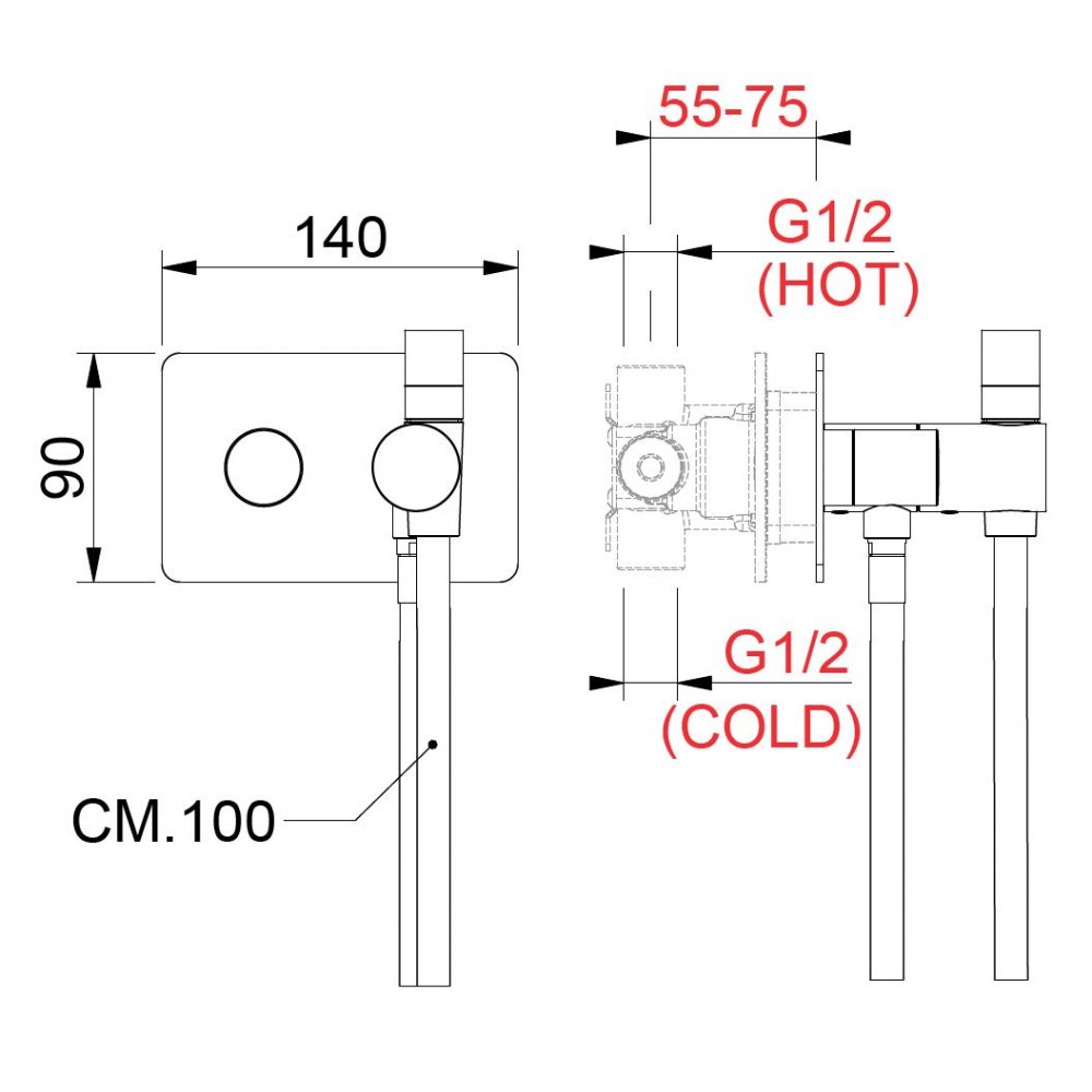 BEAMTECH T-SELECT THERMOSTATBATTERIE MIT HANDBRAUSE AUS EDELSTAHL