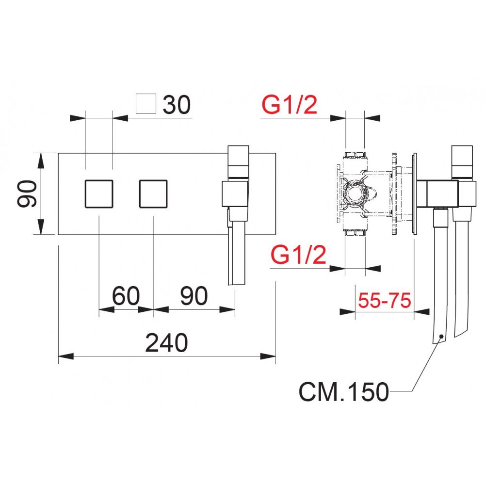 BEAMTECH T-SELECT 1-WEG-THERMOSTATMISCHER MIT QUADRATISCHER HANDBRAUSE AUS EDELS