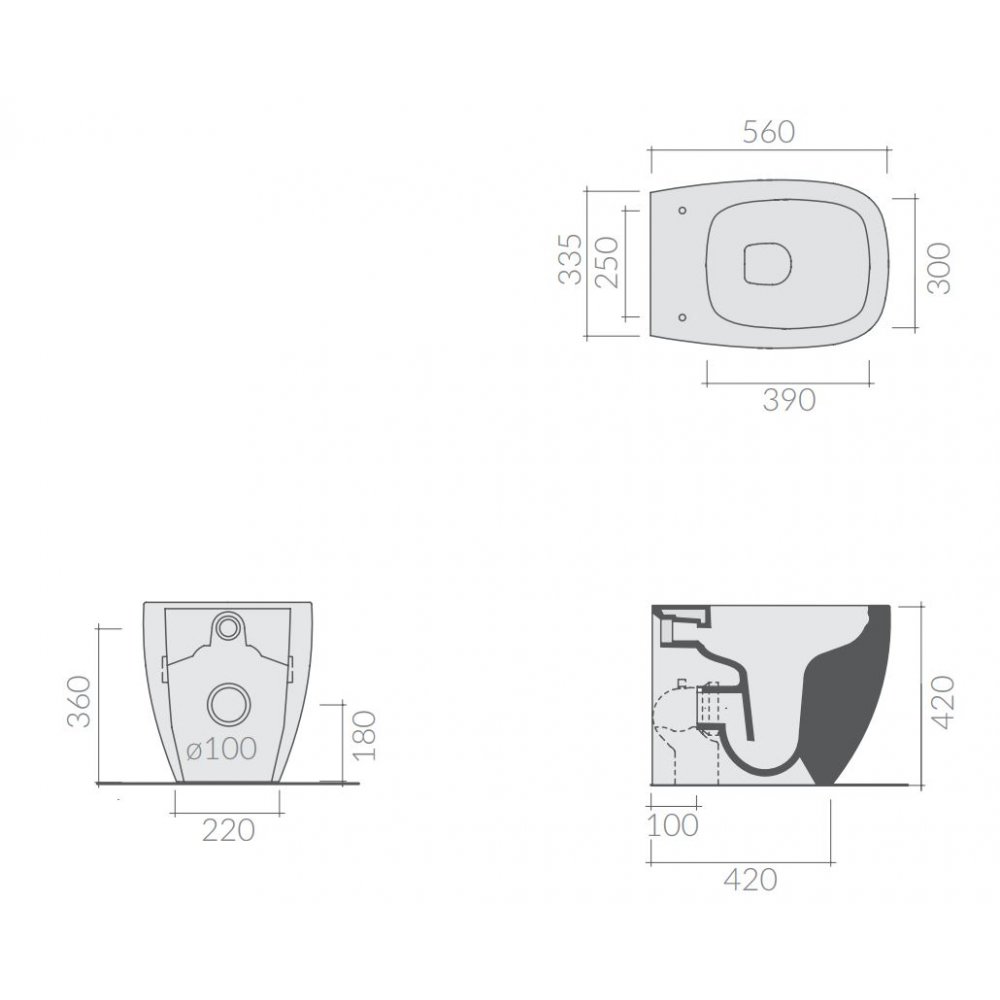 Wc mit Universalspülung S/P OHNE BRÜCKE 56x40 cm, umbaubar durch technischen Knick. Inklusive verdeckter Befestigung.