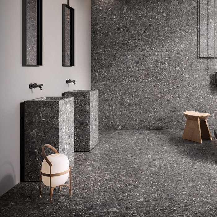 Lombarda von Ergon ist die Steineffektserie, die vom Ceppo di Grè inspiriert wurde, der in den Mailänder Gebäuden des 20. Jahrhunderts verwendet wurde.