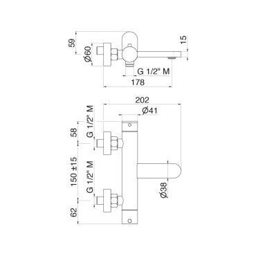 Externe Wannenbatterie mit Umsteller für Wanne und Dusche.