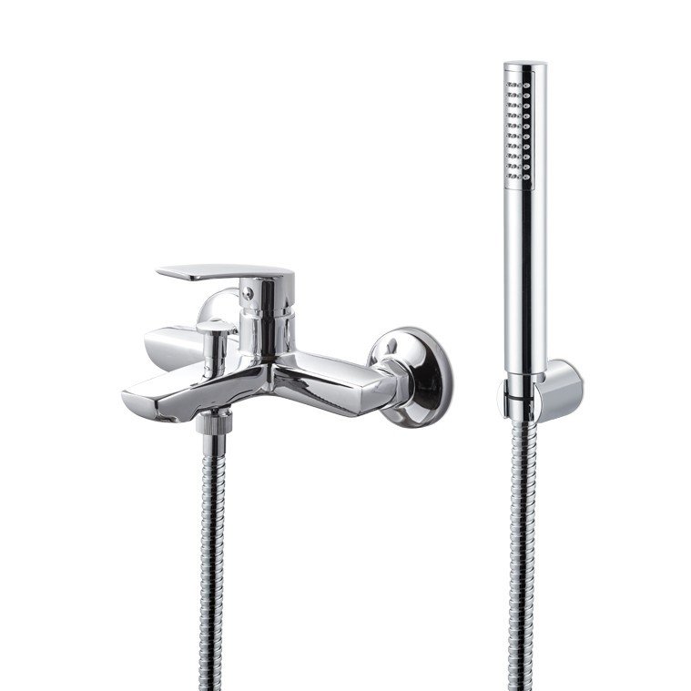 Externe Wannengruppe komplett mit festem Träger, flexiblem Schlauch und Handbrause.