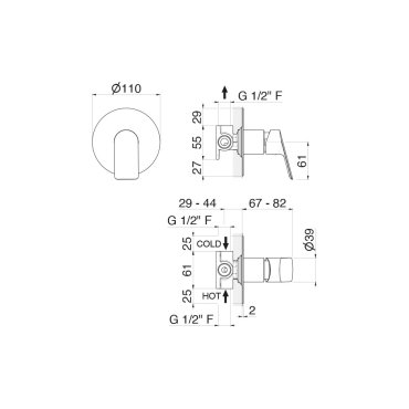 Einhebel-Brausebatterie für Unterputzmontage, komplett mit Unterputzkörper.