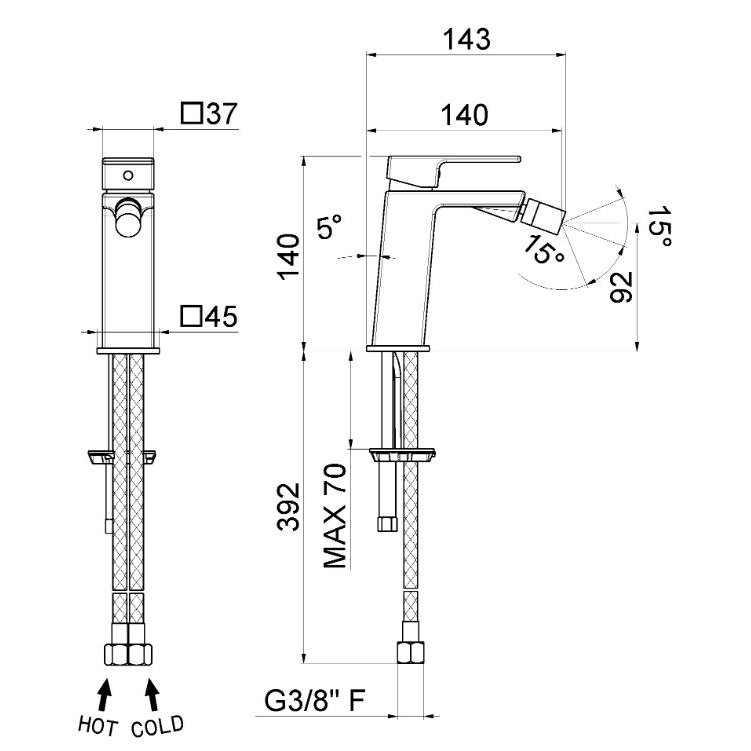 Die Serie umfasst Einhebelmischer für Waschbecken, Bidet und Dusche, die sich alle durch klare Linien und ergonomisches Design auszeichnen.