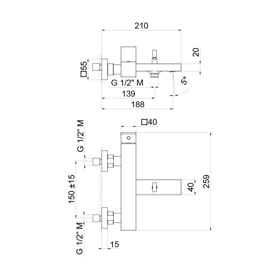 VEMA RUBINETTERIE LYS EXTERNE BADEWANNENARMATUR MIT UMLENKHEBEL CHROM