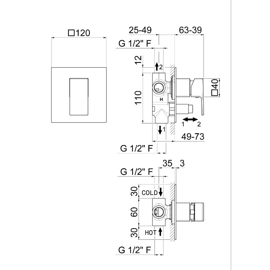 VEMA RUBINETTERIE LYS UNTERPUTZMISCHER FÜR DIE DUSCHE MIT UMSTELLER CHROM