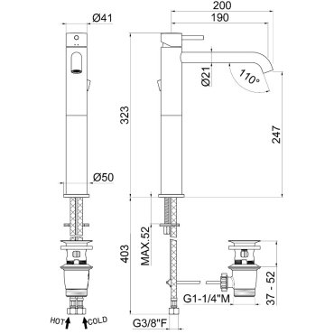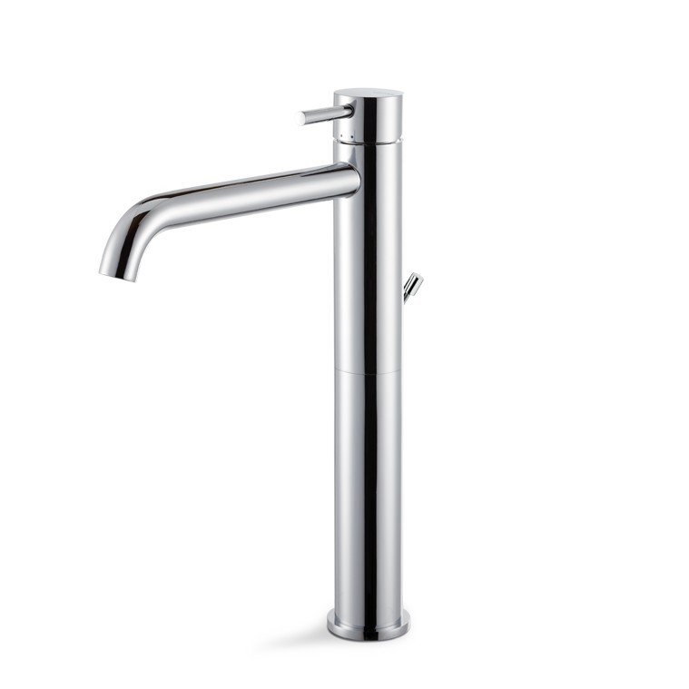 Hoher Einhebelmischer für den Waschtisch, mit 1"1/4-Ablaufgarnitur.