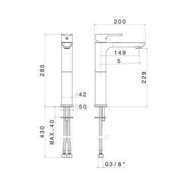 VEMA RUBINETTERIE SLATE HOHER WASCHTISCHMISCHER OHNE ABLAUFGARNITUR CHROM