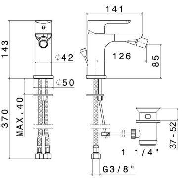 Einhebel-Bidetmischer mit 1"1/4-Ablaufgarnitur.