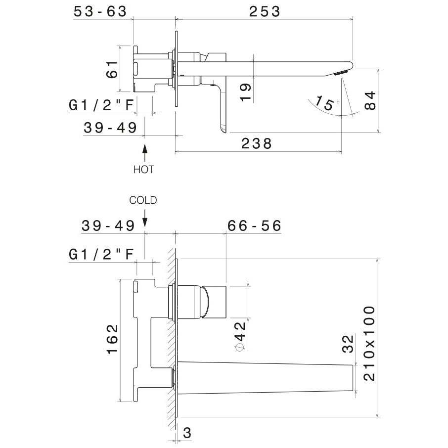 VEMA RUBINETTERIE SLATE WANDMISCHER MIT LANGEM AUSLAUF OHNE ABLAUF CHROM