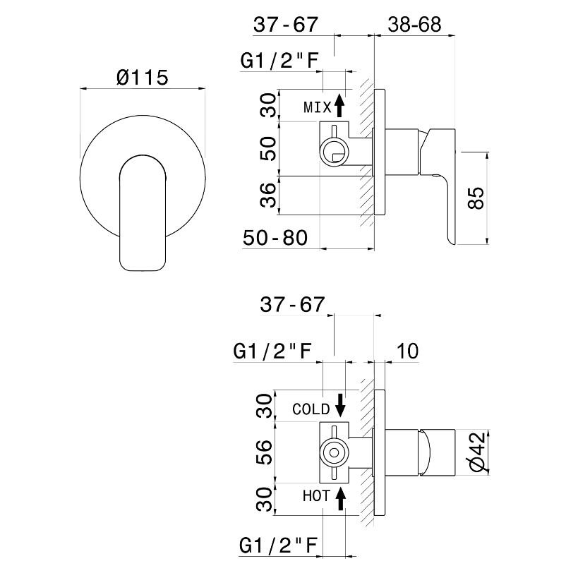 Unterputz Einhebelmischer für Dusche, mit Unterputzteil.