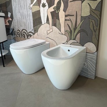 randlos randlos wandmontiertes bidet WC mit randlosem Rand bündig bündig bündig wandmontierter bidet sitz abdeckung soft close soft closing slow motion scharniere schnellverschluss badezimmer modern home furnishing 880311 MS992C11 8872111