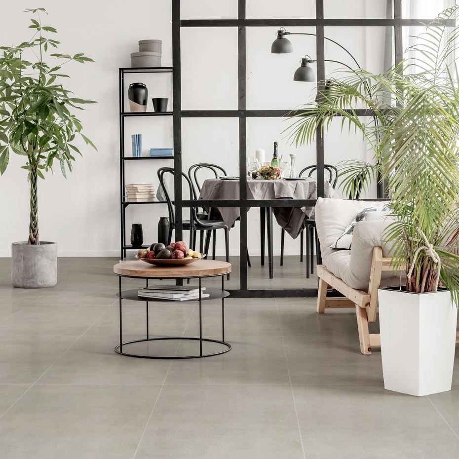 Fliesen Bodenbeläge Wandverkleidung Feinsteinzeug Betoneffekt Betonoptik Zementeffekt Zementoptik Intern Küche living Wohnbereich Schlafzimmer Geschäfte kommerziell Fußbodenheizung natural R9 8,5mm 0,85cm AAA300C