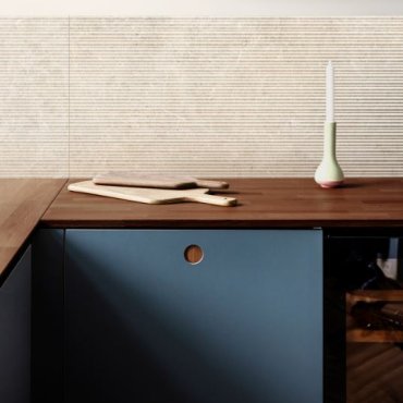 Ergänzt und bereichert wird die Kollektion Limestone Wall durch die Dekore Agrifoglio und Losanga mit natürlichen, geometrischen Motiven, die mit der Touch-Technologie hergestellt werden, um den Dekoren Tiefe und eine realistische Textur zu verleihen.
