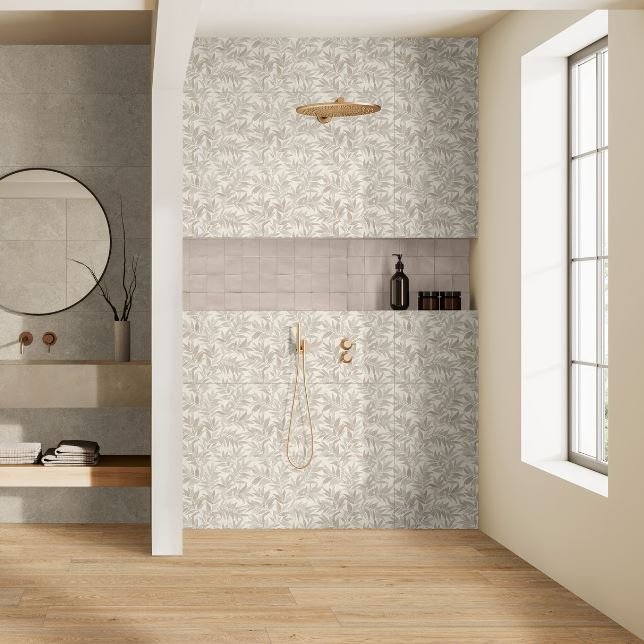 Ergänzt und bereichert wird die Kollektion Limestone Wall durch die Dekore Agrifoglio und Losanga mit natürlichen, geometrischen Motiven, die mit der Touch-Technologie hergestellt werden, um den Dekoren Tiefe und eine realistische Textur zu verleihen.