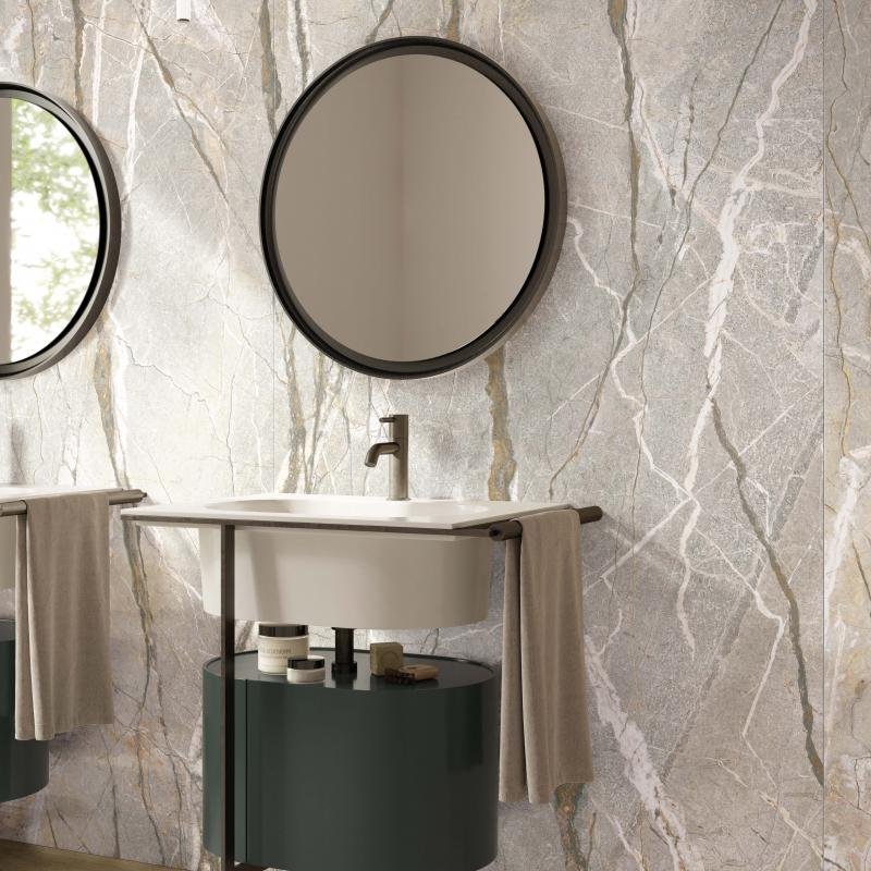 Inspiriert von der Idee eines kompromisslosen sinnlichen Erlebnisses, bietet SupremeHedonism brillante Oberflächen und Texturen, die an feinsten Naturmarmor erinnern und mit metallischen Details und gewagten Maserungen verziert sind.