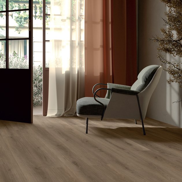 Die Kollektion BeSmart Essential Oak hat ein Format von 19x123 cm und eine Stärke von 5 mm. Die Oberfläche ist mit einem Finish versehen, das sie realistischer macht, mit gut ausgeprägten Ästen und Maserungen und einer Patina, die sie extra-matt macht, ähnlich wie echtes Parkett. Die 2G-Verbindung (Nut und Feder) ist für professionelle Verleger einfach, für den Heimwerker jedoch etwas komplexer. Einmal verlegt, gibt es keine Fugen zwischen den Dielen. Die Kollektion umfasst auch das XL-Format 23x184 cm mit einer Stärke von 7 mm, erhältlich in den Farben Woodland und Canyon Pacific und Silver Grey.