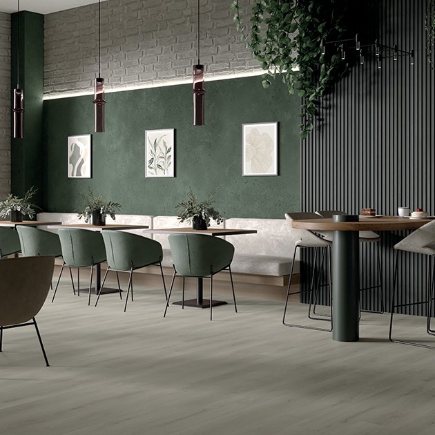 Die Kollektion BeSmart Essential Oak hat ein Format von 19x123 cm und eine Stärke von 5 mm. Die Oberfläche ist mit einem Finish versehen, das sie realistischer macht, mit gut ausgeprägten Ästen und Maserungen und einer Patina, die sie extra-matt macht, ähnlich wie echtes Parkett. Die 2G-Verbindung (Nut und Feder) ist für professionelle Verleger einfach, für den Heimwerker jedoch etwas komplexer. Einmal verlegt, gibt es keine Fugen zwischen den Dielen. Die Kollektion umfasst auch das XL-Format 23x184 cm mit einer Stärke von 7 mm, erhältlich in den Farben Woodland und Canyon Pacific und Silver Grey.