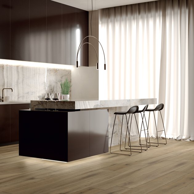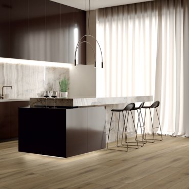 S-Wood ist eine 5 mm starke Kollektion mit Dielen im Format 22,5 x 153 cm, EIR-Oberfläche und 0,55 mm Nutzschicht.