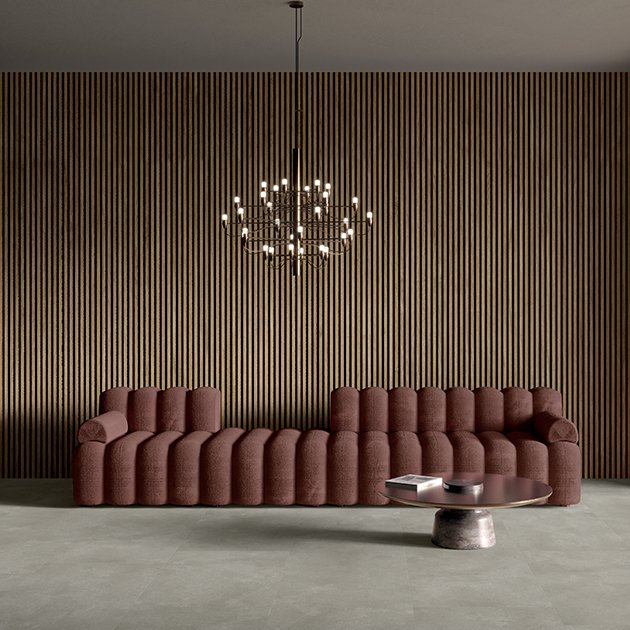 Das Format 61,5x123 cm bietet ein fugenloses Erscheinungsbild, das dem modernen Feinsteinzeug ähnelt.