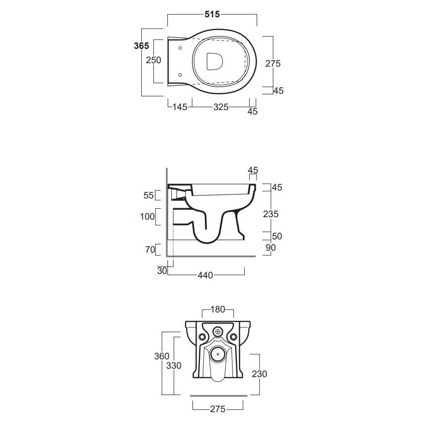 LO 918: WC wandhängend, Schallschutz inklusive  Technisches Datenblatt