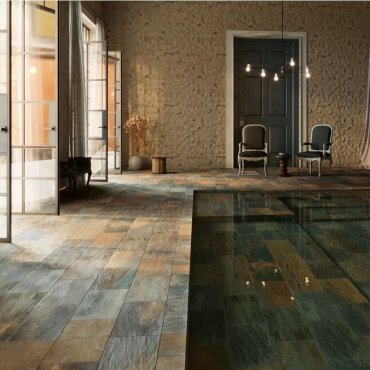 Die Formate 30×60 cm und 21,6×43,5 cm mit gewellter Kante bieten eine große Gestaltungsvielfalt und sorgen für eine hervorragende Kontinuität zwischen Innen- und Außenbereichen.