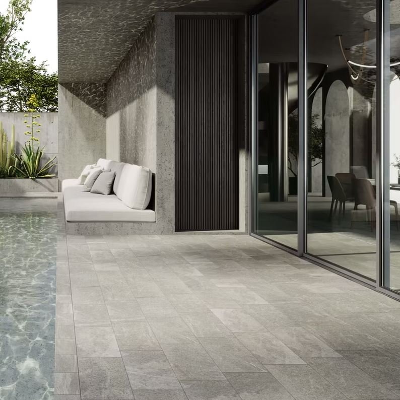 Erhältlich in vier Farbnuancen (Slate, Quarzite, Piasentina and Barge), verbindet Rock die Ästhetik des Materials mit Witterungsbeständigkeit und Rutschfestigkeit dank der Oberfläche Grip R11.