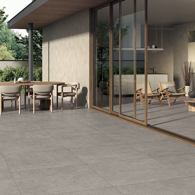 Feinsteinzeug ZementEffekt BetonEffekt Zementoptik Betonoptik Bodenfliesen Außenbereich Fliesen Terrassenplatten Terrassenfliesen Aussenfliesen Garten Gartenallee Balkon grip rektifiziert R11 20mm 2cm 02XTR62R44