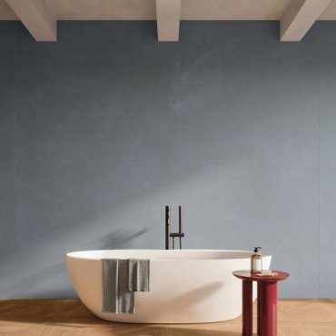 Ebenfalls erhältlich sind die Platte 120x78 mit einer Dicke von 6 mm und die weiße Wandverkleidung im Format 50x120 RT und 25x75.