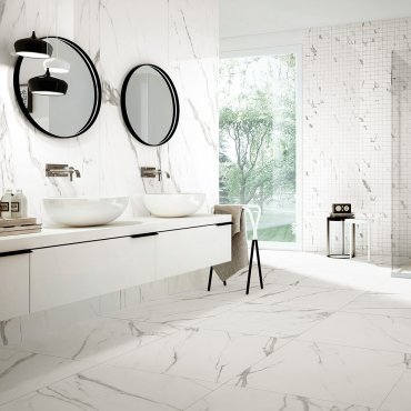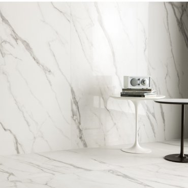 Die Majestic-Kollektion aus porzellanemaillierten Gres in Marmor-Optik von Dom Ceramiche präsentiert ihre Produkte in 5 Grössen