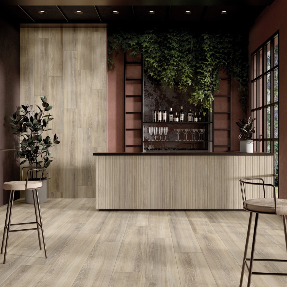 Fliesen Bodenbeläge Wandverkleidung Feinsteinzeug holzoptik holzeffekt Intern Küche living Wohnbereich Schlafzimmer Geschäfte kommerziell natural rektifiziert R10 9,5mm 0,95cm 303660 Fußbodenheizung