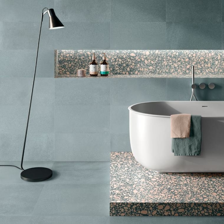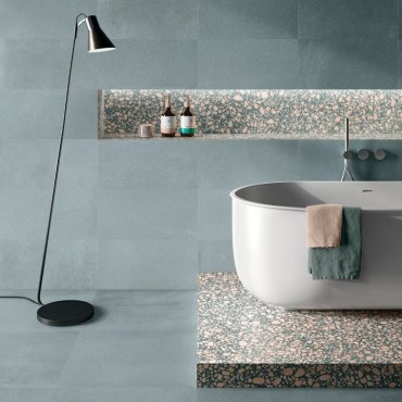 Medley ist eine Ergon-Kollektion aus Porzellansteinzeug, die vom venezianischen Boden inspiriert ist, der auch als Terazzo oder Seminato bekannt ist. Die Kollektion besteht aus zwei Zementvarianten, minimal und technisch, zu denen 3 Terazzo-optike hinzukommen: Classic, Rock und Pop, die sich je nach Größe und Form der Splitter auszeichnen. Medley eignet sich dank seines zeitgemäßen und zeitlosen Stils in den 6 Farbvarianten Weiß, Blau, Grün, Dunkelgrau, Pink und Grau für Wohn- und Geschäftsumgebungen. Dank der 20mm dicken rutschfesten Oberfläche wird es auch für den Außenbereich verwendet.