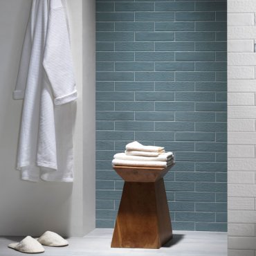 Urban& Colors, the brick-effect porcelain stoneware collection created by designer Andrea Castrignano from Ceramica Rondine, is perfectly suited to cover modern environments. An extraordinary brick out of the ordinary for its particular colors and patterns rich in personality.Urban & Colors is characterized by an urban style that adapts to all indoor spaces. Available in 6x25 format, this new series in brick effect elaborates two distinct chromatic solutions: the soft and dusty shades of blue, light blue and brown that are declined in both single-color version ("Baltic T.U", "Balene T.U", "Bracco T.U") that "degradè" ("Bracco Shade", "Balene Shade", "Baltic Shade").The white shade is perfect to use with the Track version, which reflects a style with a stronger character, industrial, tendentially more impetuous at an aesthetic level.