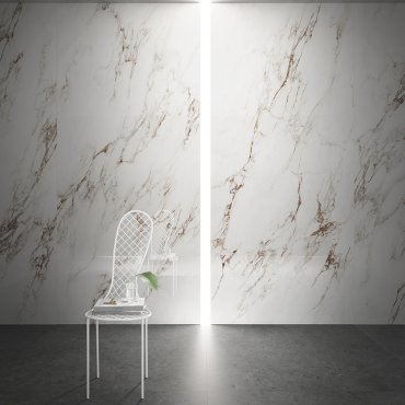 Sunshine, the marble-effect porcelain stoneware collection by Ceramiche Pastorelli, brings together different types of marble to create a unique chromatic effect embellished with extraordinary graphic details.
