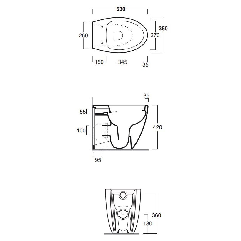 The set includes: LFT20 - back to wall WC with wall or floor outlet by curved pipe LFT005 - white thermoset toilet seat chromed soft-closing hinge and quick release