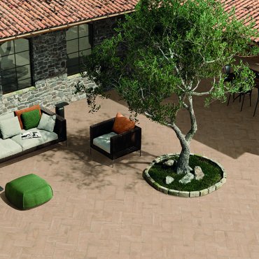 the warmth and the charm of typical Italian floors. Terracotta-effect porcelain stoneware is perfect for outdoor but it can also be used