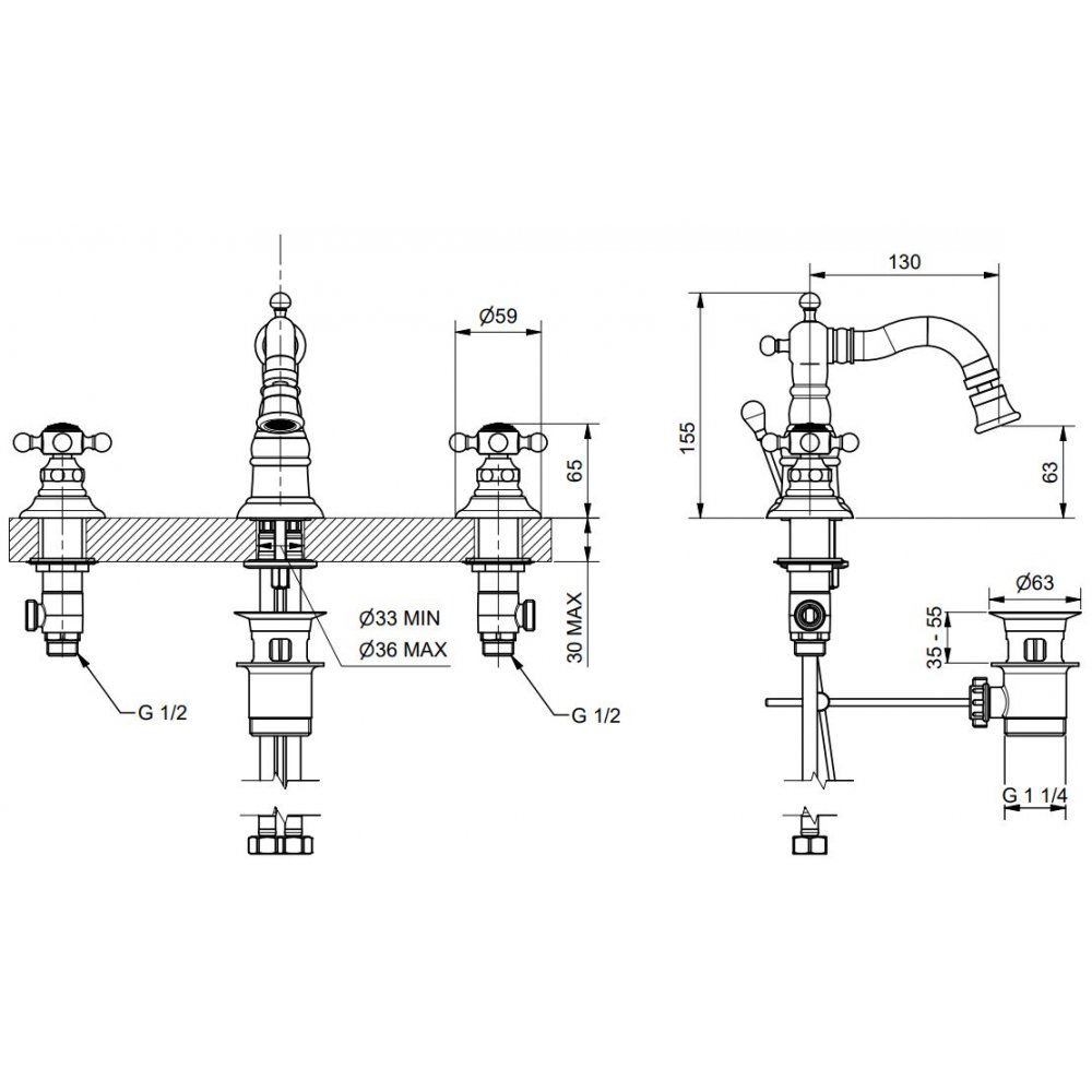 BUGNATESE ARCADIA BIDET MIXER WITH SPOUT AUTOMATIC POP-UP CHROMED