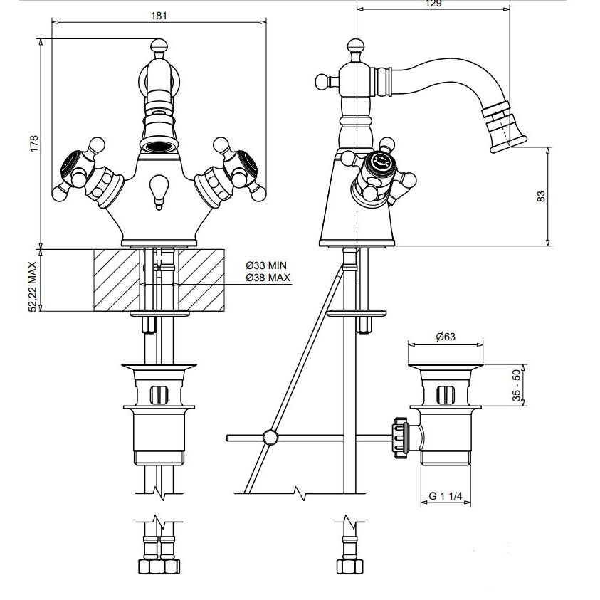 BUGNATESE ARCADIA SINGLE HOLE BASIC MIXER AUTOMATIC POP-UP