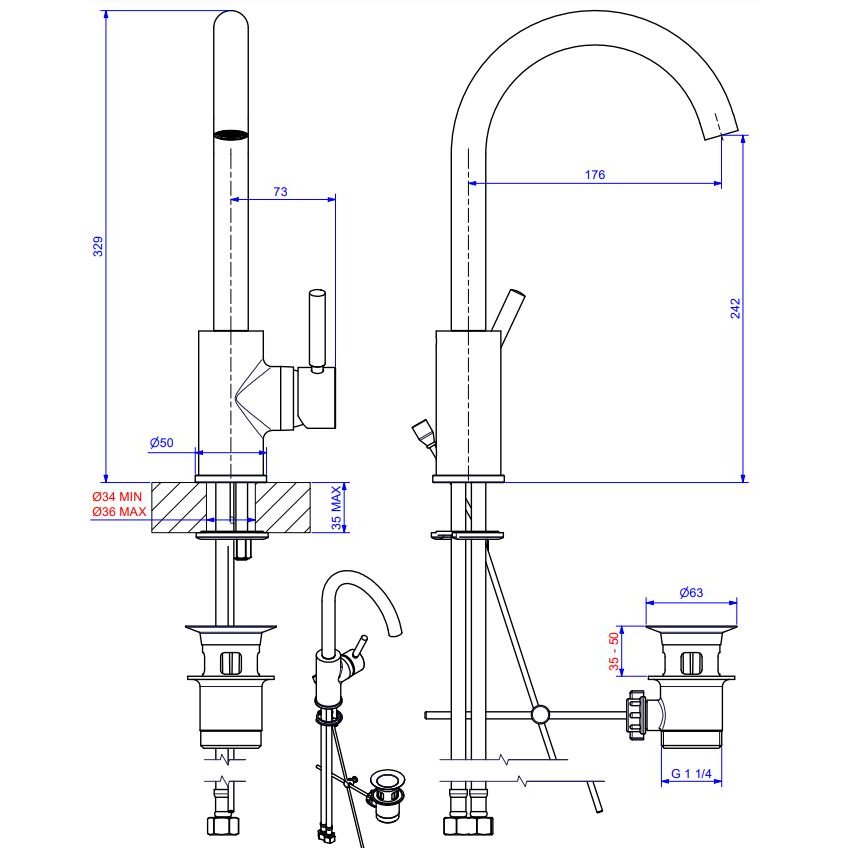 BUGNATESE KOBUK BASIN MIXER HIGH SPOUT WITH POP-UP