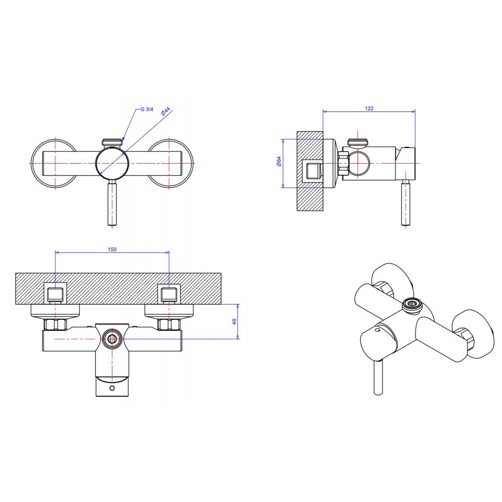 BUGNATESE KOBUK EXTERNAL SHOWER MIXER WITH CONNECTION 3/4